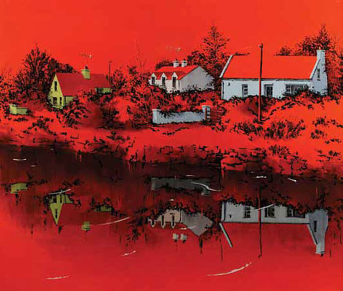 The West of Ireland landscape has had a lasting impression on Crowley since he began to visit the area and discover his family ties, in his late teens. Over the years he has “wanted to reflect its transformation from the rural to the suburban.
