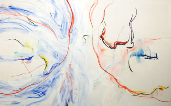 In these paintings Foley is searching for that moment where on canvas painted line, space and substance come into existence as form and structure. The paintings are reduced to the essences of gesture, line, white space and primary colour to investigate the structural fabric of space and form. These works are concerned with how the figure and space are seen as binary experiences in a singular struggle.
