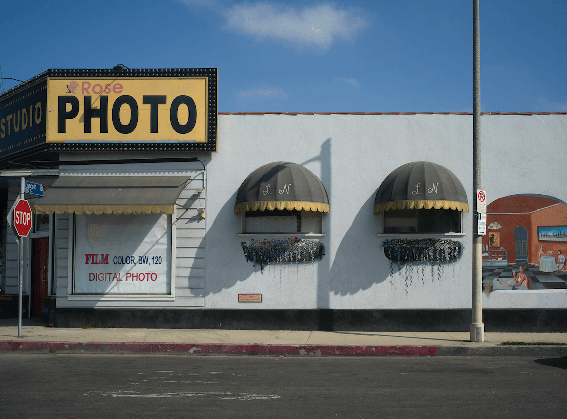This exhibition of new works by Fiona Hackett comprises of framed original photographs of the urban landscape of Los Angeles, mostly facades onto its streets, with imaginings of the place referencing social history, landscapes of dreams and diverse cultures.